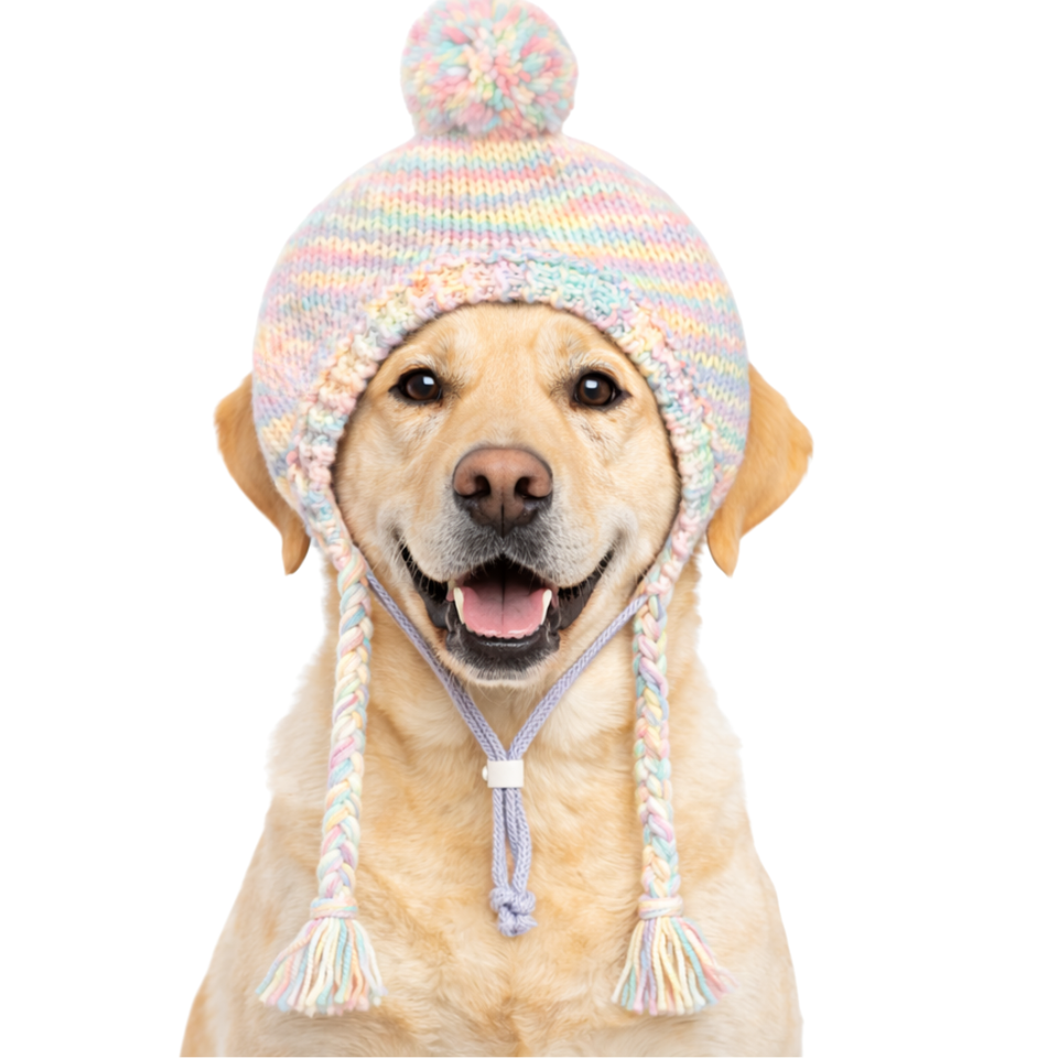 Knit Pom Pom Dog Beanie Hat Purple Lavender Cozy Winter Headwear with Ear Ties Soft Warm Fit for Small Medium Dogs