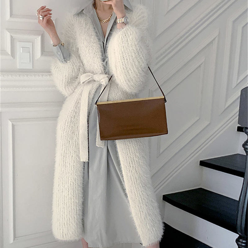 Knit Puff Sleeve Knitwear Maxi Designer Mohair Coat Custom Long Sweaters Women Cardigan Design Sweater
