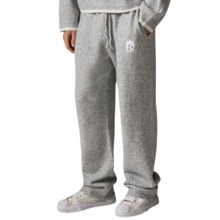 Knitted Jogger Pants Grey Casual Sweatpants Elastic Waist Lounge Wear Street Style Soft Knit Trousers for Men Women