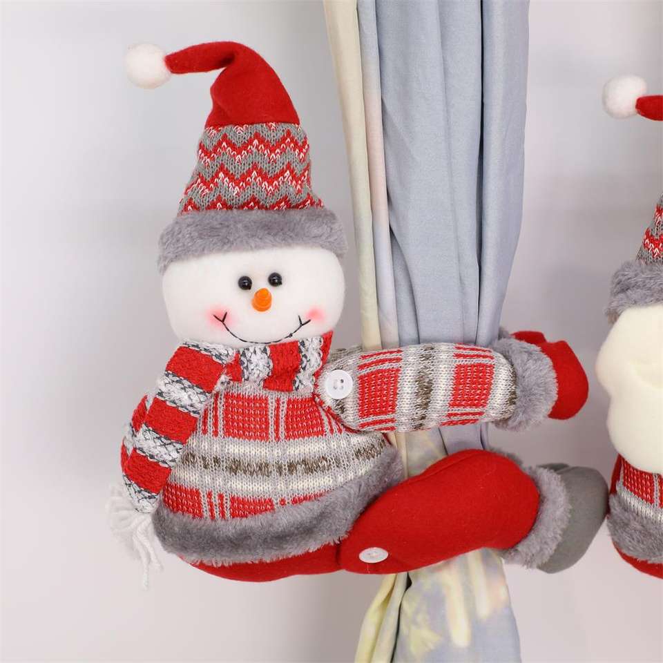 Knitted Plaid Christmas Curtain Tiebacks Snowman Santa Reindeer Set Cozy Holiday Window Decor for Home Gift Giving