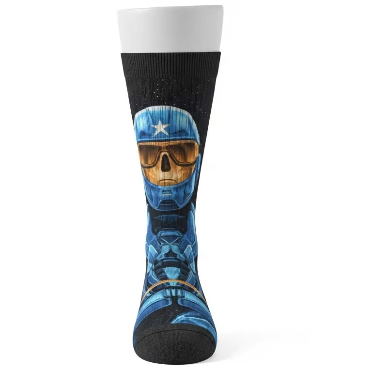 Knitted Sporty Digital Printing Socks Soft Polyester Spandex Material Breathable Cushioned Design Sports Running Fitness Socks