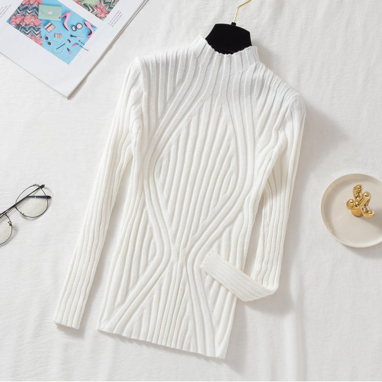 Knitted Sweater Women Pullover 2023 Half Turtleneck Jumper Sweater Autumn Winter Solid Slim Chic Streetwear Long Sleeve Top Y2K