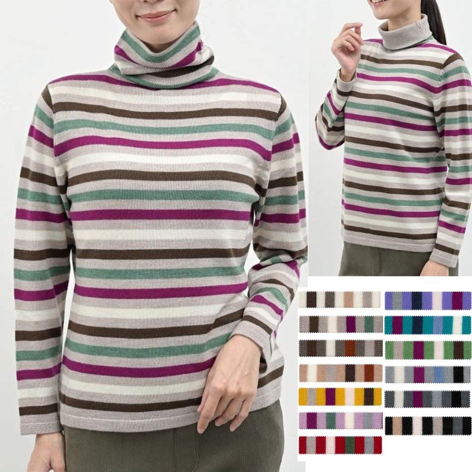 Best Brand Designer Online Ladies Sweater Knitted Turtle Neck Street Wear Casual Style 100% Wool Multiple Color Horizontal