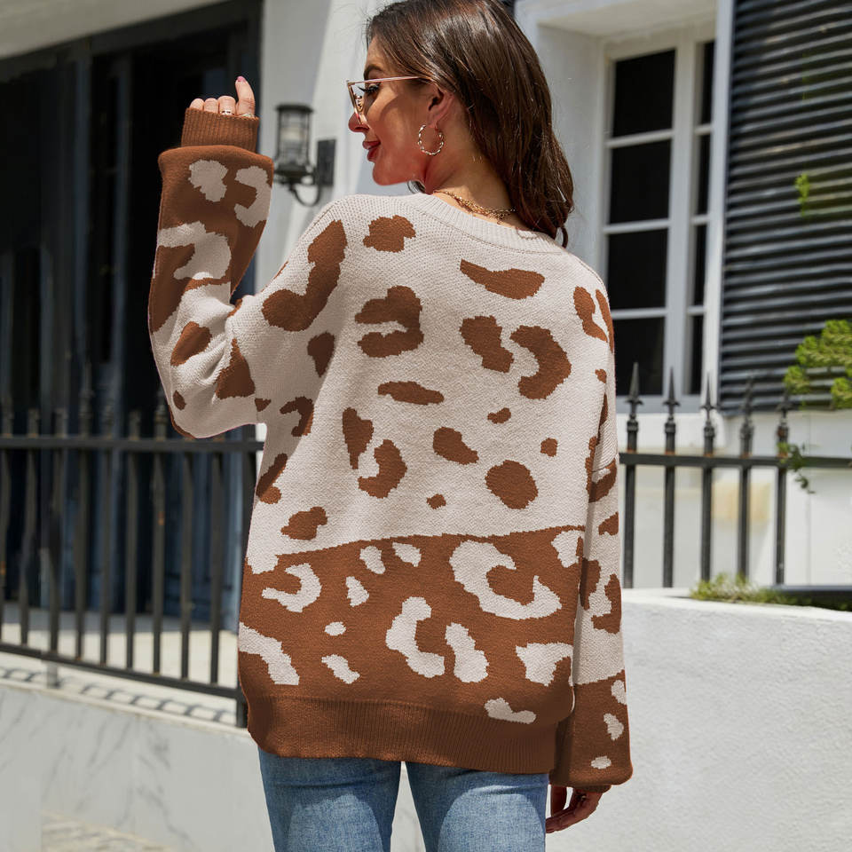 Brand Name:Sourceman knitted woman sweater leopard