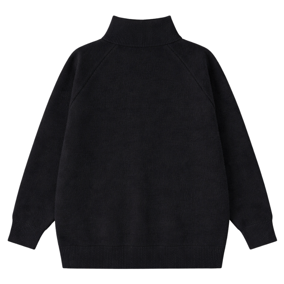 Knitted Zip Up Sweater Black High Neck Full Zip Cardigan Soft Warm Knit Long Sleeve Casual Streetwear Top