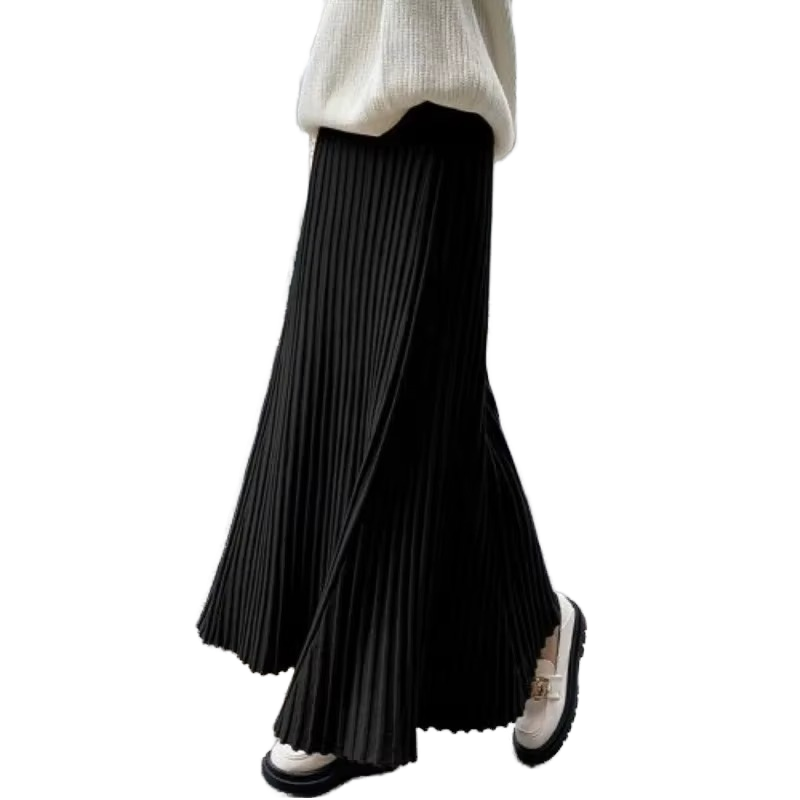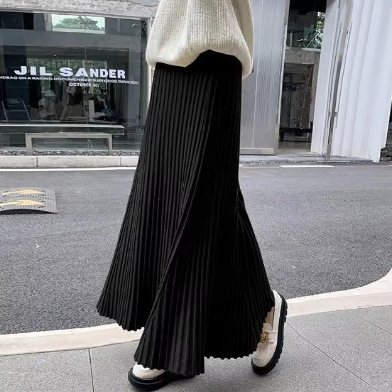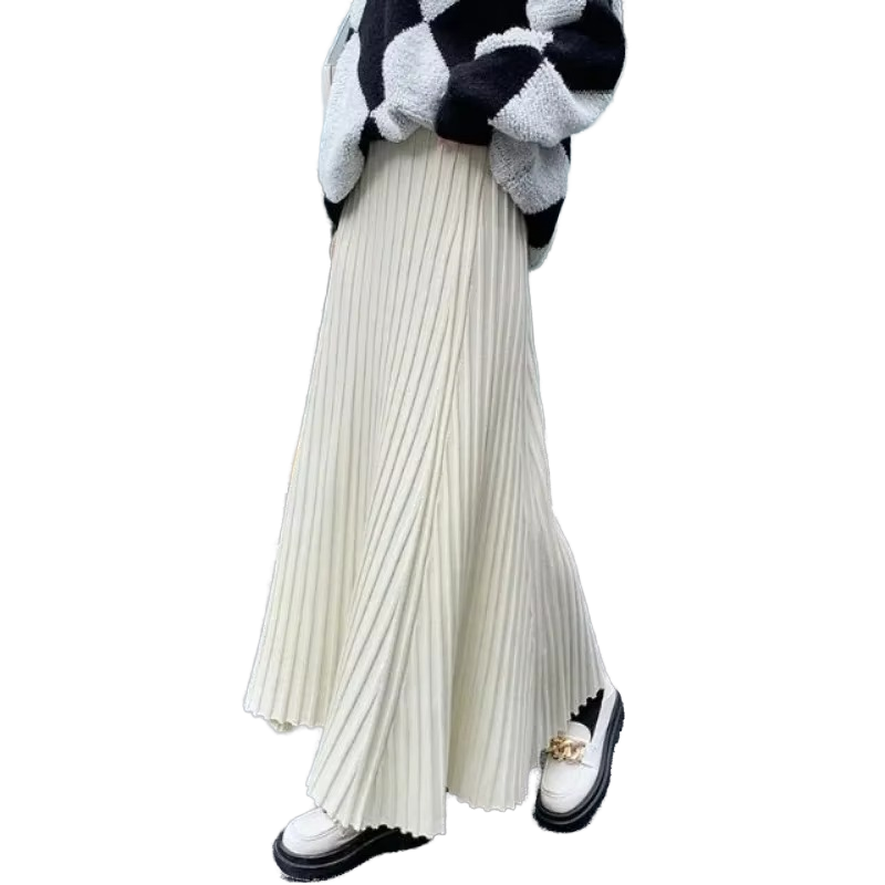 Knitted Maxi Women's A-Line Skirt Natural Waist Wide Span Autumn Pleated Breathable