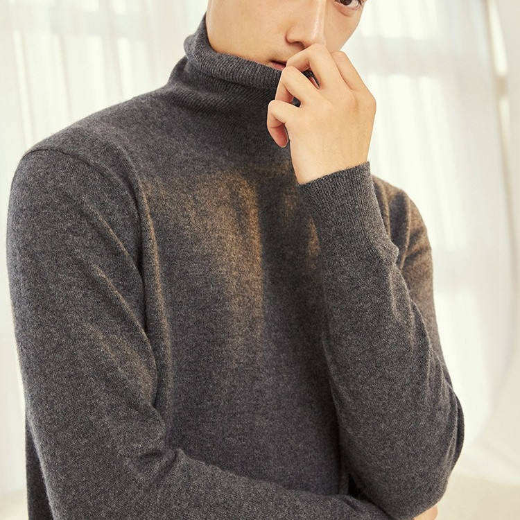 Knitted slim fit stylish mens turtleneck sweater pullover breathable warm soft comfortable fabric modern fashion winter wear