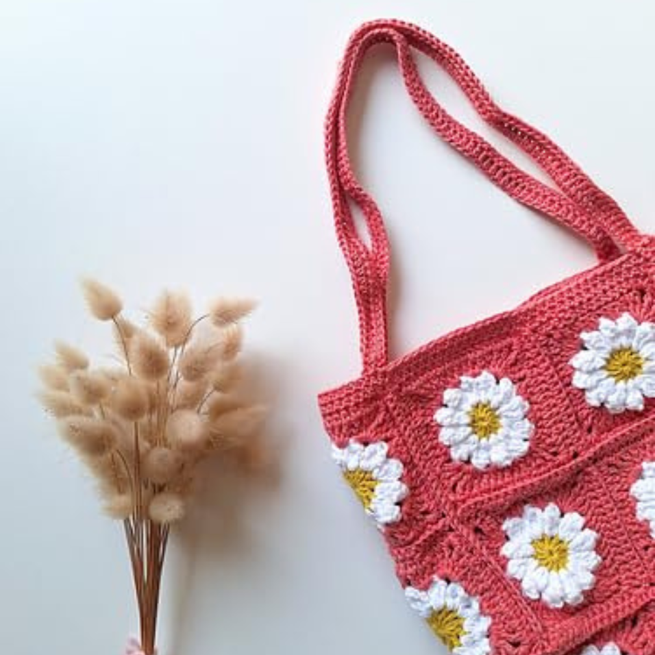 Knitting Large Size Granny Square Tole Shoulder Handbag, Handmade Crochet Motif Aesthetic Tote Bag for Girls OEM Made in Vietnam
