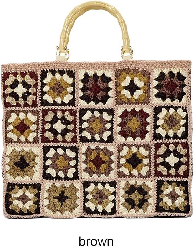 Knitting Large Size Granny Square Tole Shoulder Handbag, Handmade Crochet Motif Aesthetic Tote Bag for Girls OEM Made in Vietnam