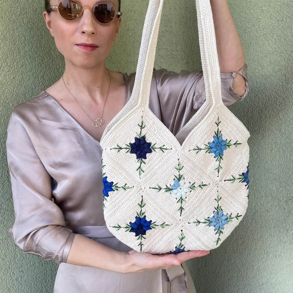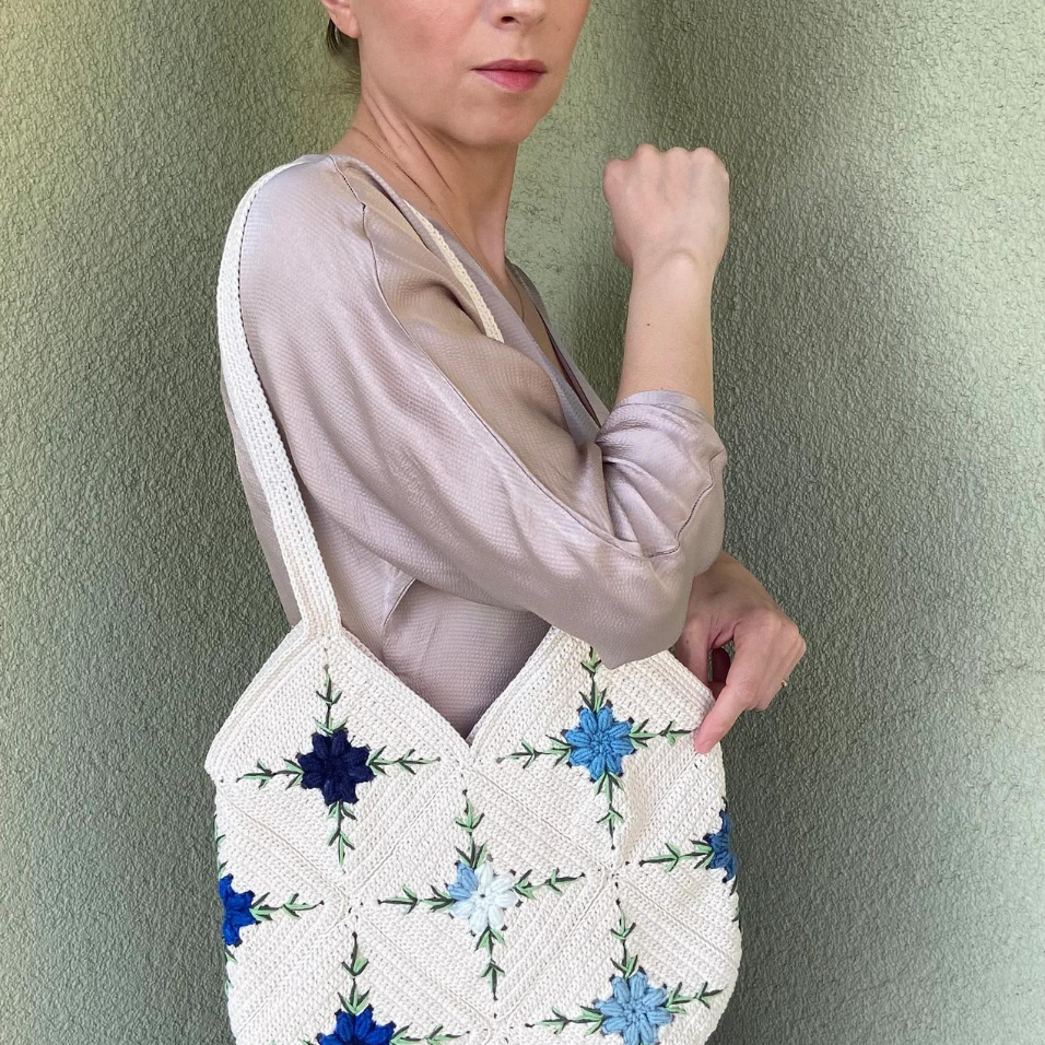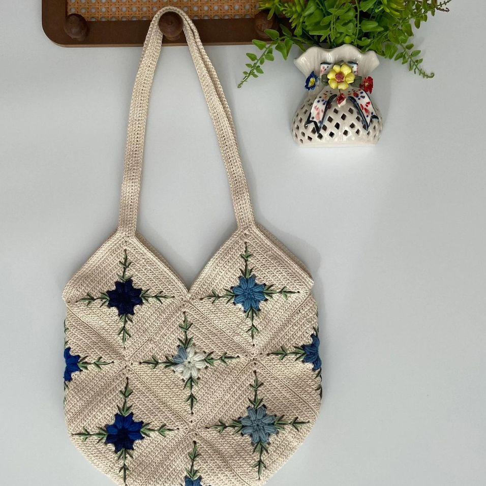 Knitting Large Size Granny Square Tole Shoulder Handbag, Handmade Crochet Motif Aesthetic Tote Bag for Girls OEM Made in Vietnam