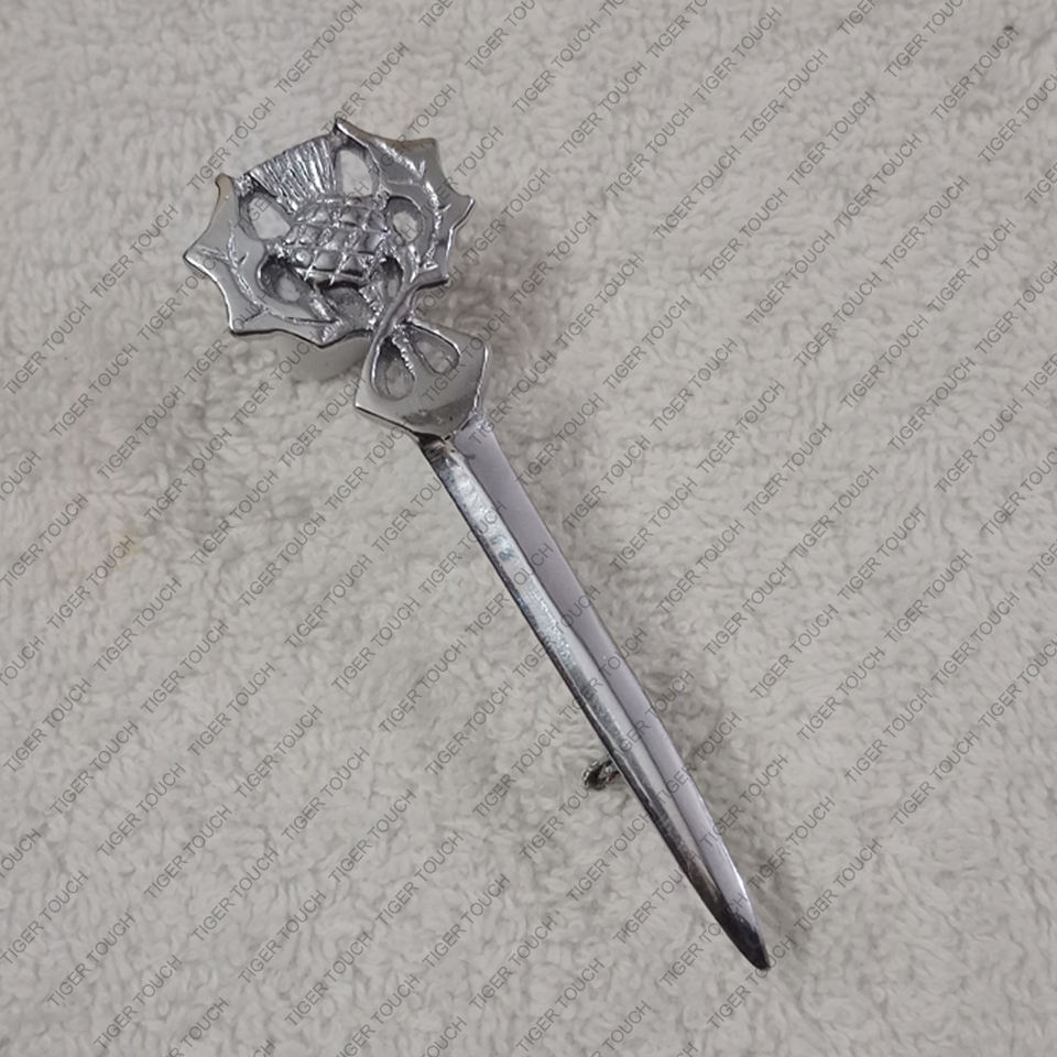 Andrew Lion Rampant Sword Kilt Pin Stylish Copper Belt for Buckle with Thistle Hilt Swirl and Stag Head in Knot Style