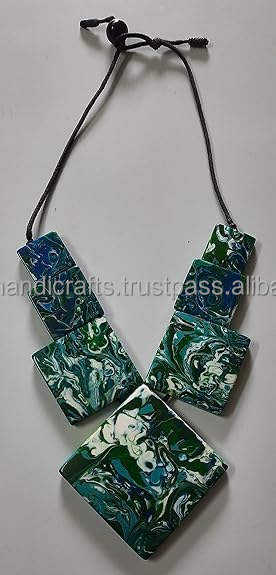 Knotted Macrame Necklace with Polymer Clay, Wooden Beads, Ruby and Diamond Stones, Copper, Titanium, and Plastic Gift