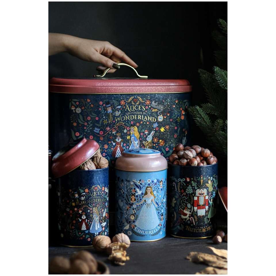 Kontensan 4-Piece Round Tin Kitchen Set with Dome Lids Vintage Caf-Inspired Linen Texture Design