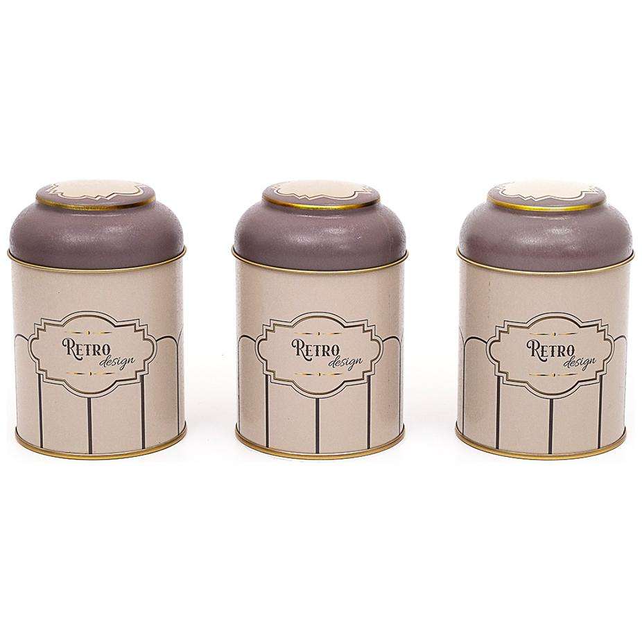 Kontensan Dia 90x100 mm Metal Canister Set (Set of 3) with Dome Lids Retro Design