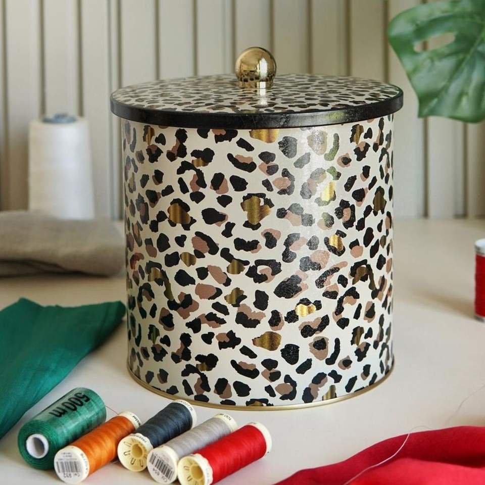 Kontensan ER147V4 175x180 mm Gold Leopard Print Pattern Metal Round Canister Knob Handle for Food Storage & Container