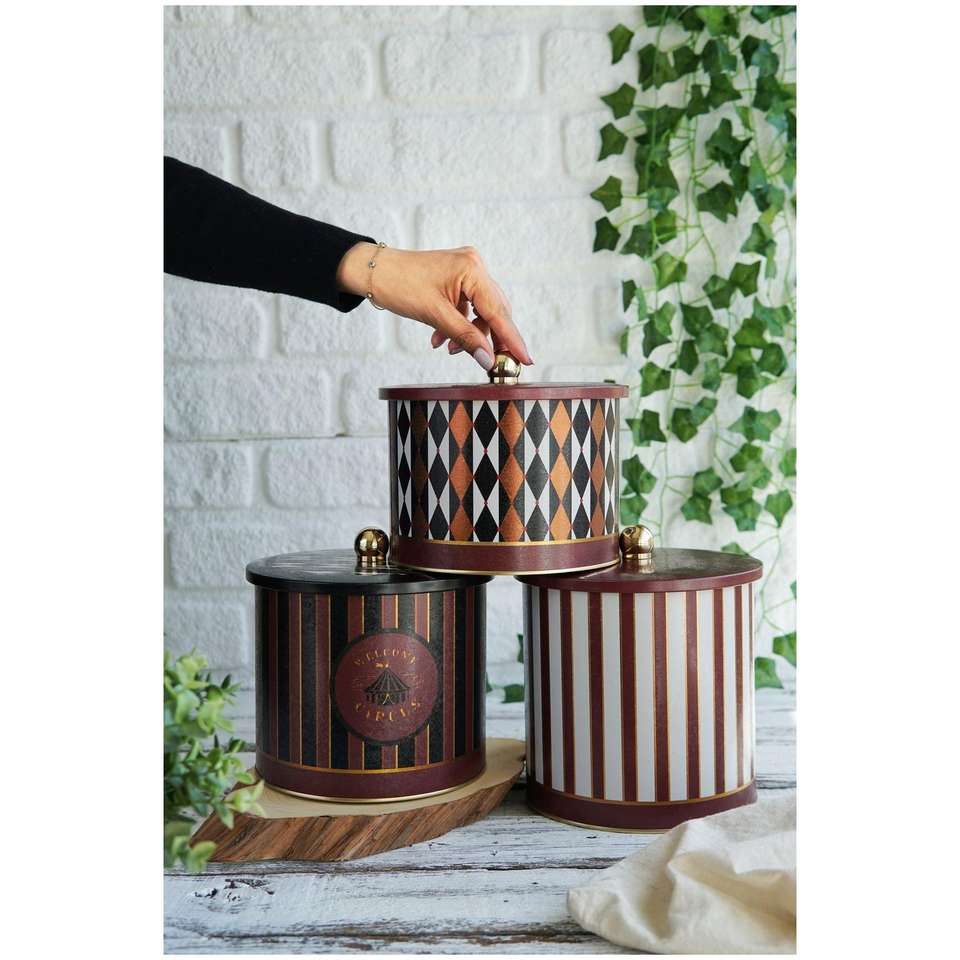 Kontensan Round Metal Tin Canister Set Dia 175 mm (3Pcs) Vintage Circus Elegance Design