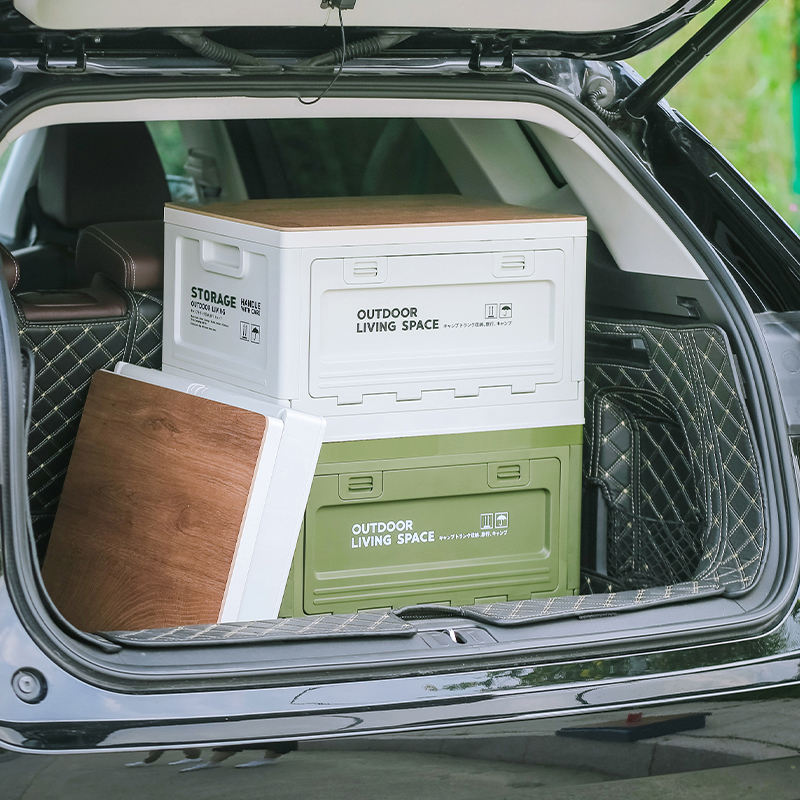 Korea Creative PP Plastic Storage Box Outdoor Folding Storage Container with Wooden Lid for Camping Rectangle Shape