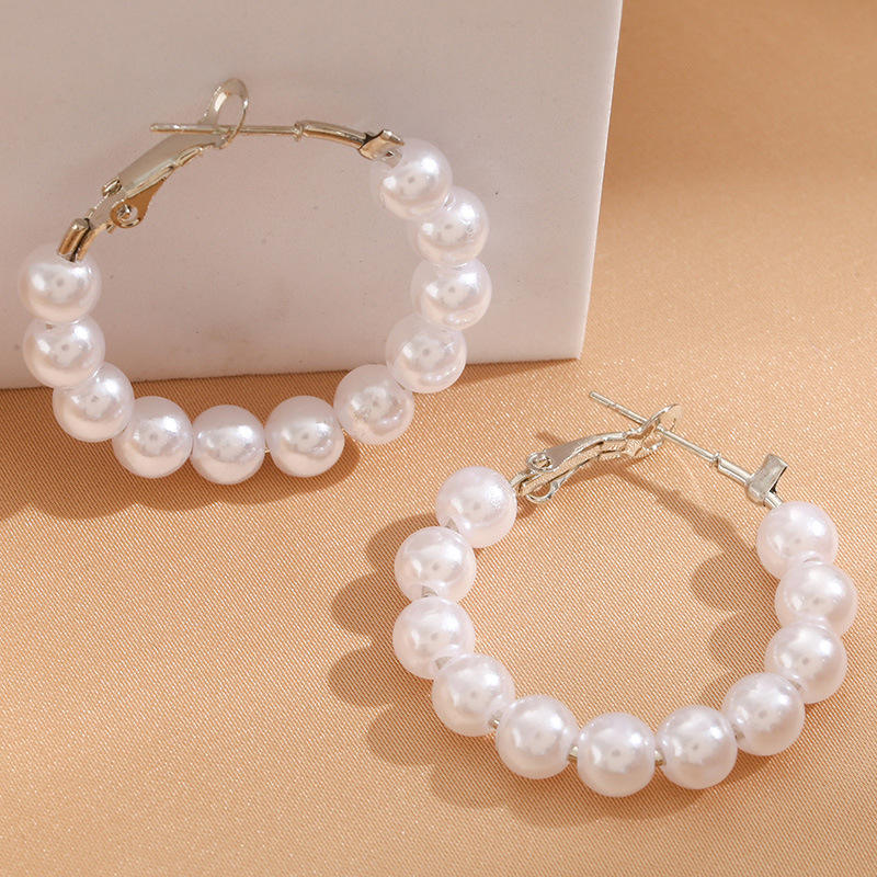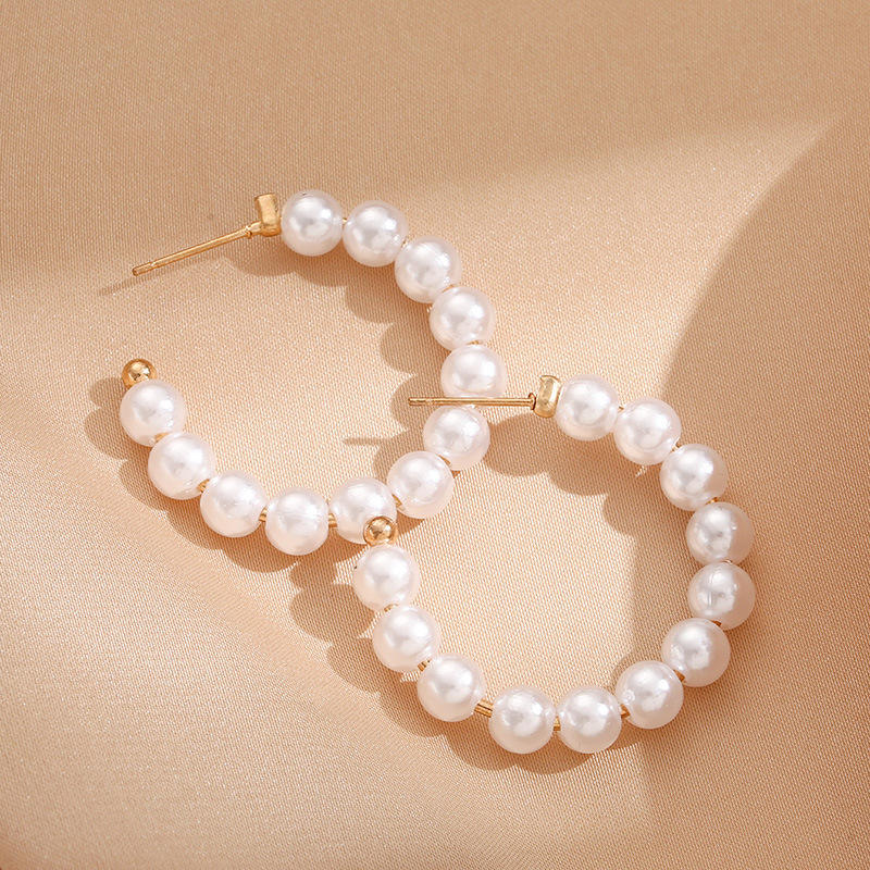 Korea Dongdaemun Style Large Round Pearl Stud Earrings Summer 14K Gold Plated Unisex Gift in Stock