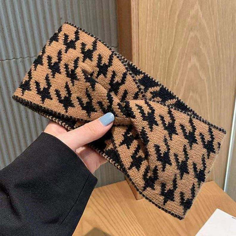 Korea Houndstooth Pattern Women Knitted Headband Hair Accessories for Women Wide Brimmed Style Hair Hoop Bezel Fashion Headbands