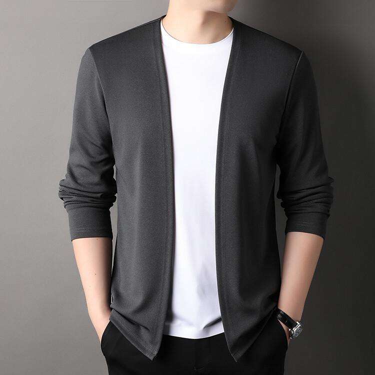 Korean Fashion Men's Cardigan Jacket Spring Autumn New Light Thin Breathable Versatile Business Casual Long Sleeve Slim