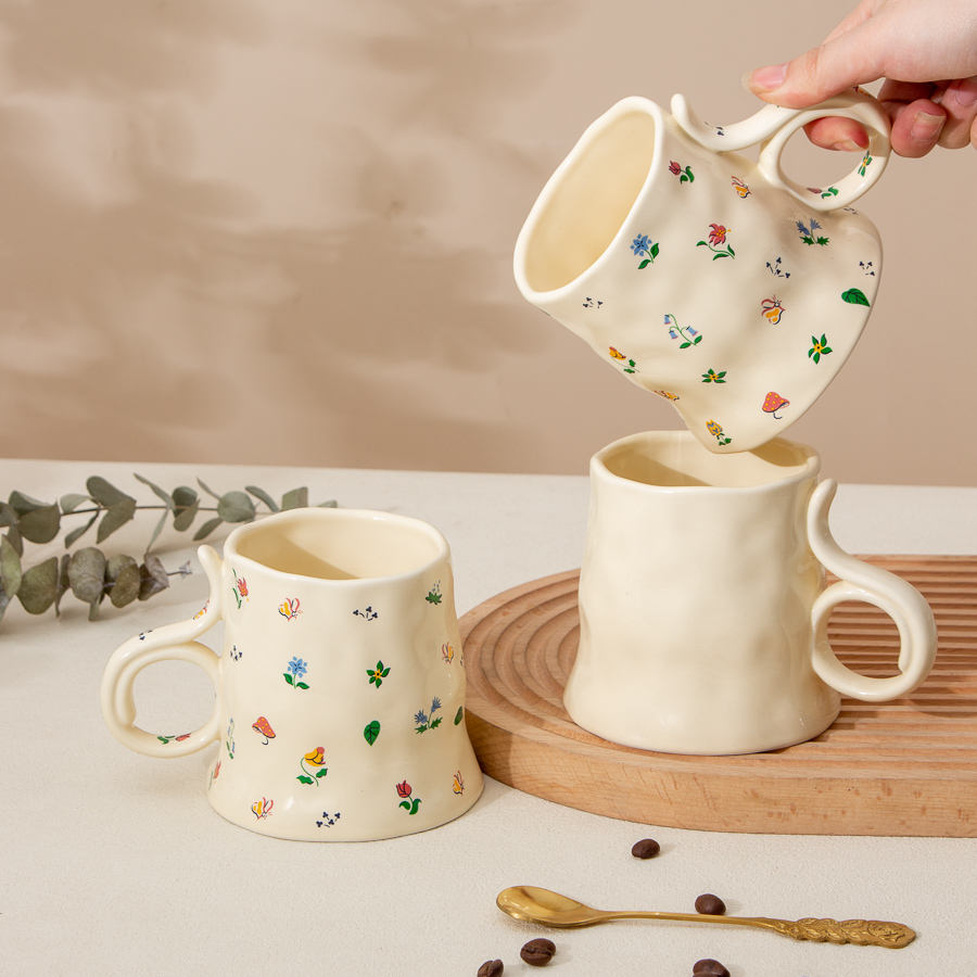 Korean Floral Coffee Cup Ceramic Mug Custom logo with Gift Couple Ceramic Cup