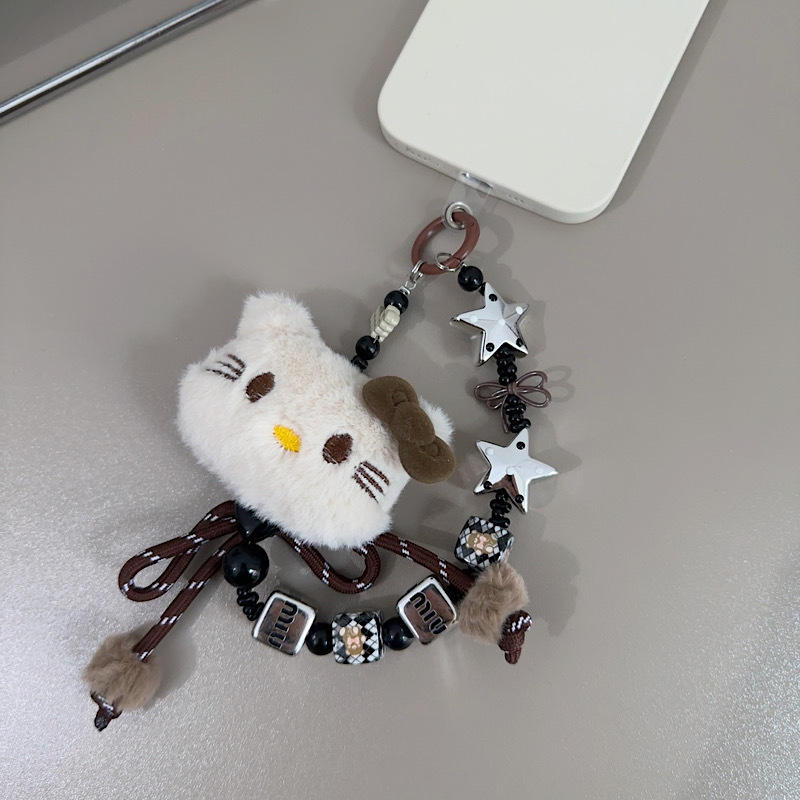 Korean Ins Girl Cute Doll Mobile Bag Pendant Backpack Decoration Sweet Cool Dark Plush KT Plastic Key Chains with Hanging Chain