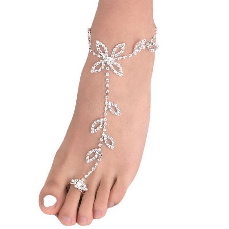 Korean Ladies' Integrated Chain Anklet Leaf Back Circle Butterfly Rhinestone Gold Plated Alloy Jewelry Bridal Wedding