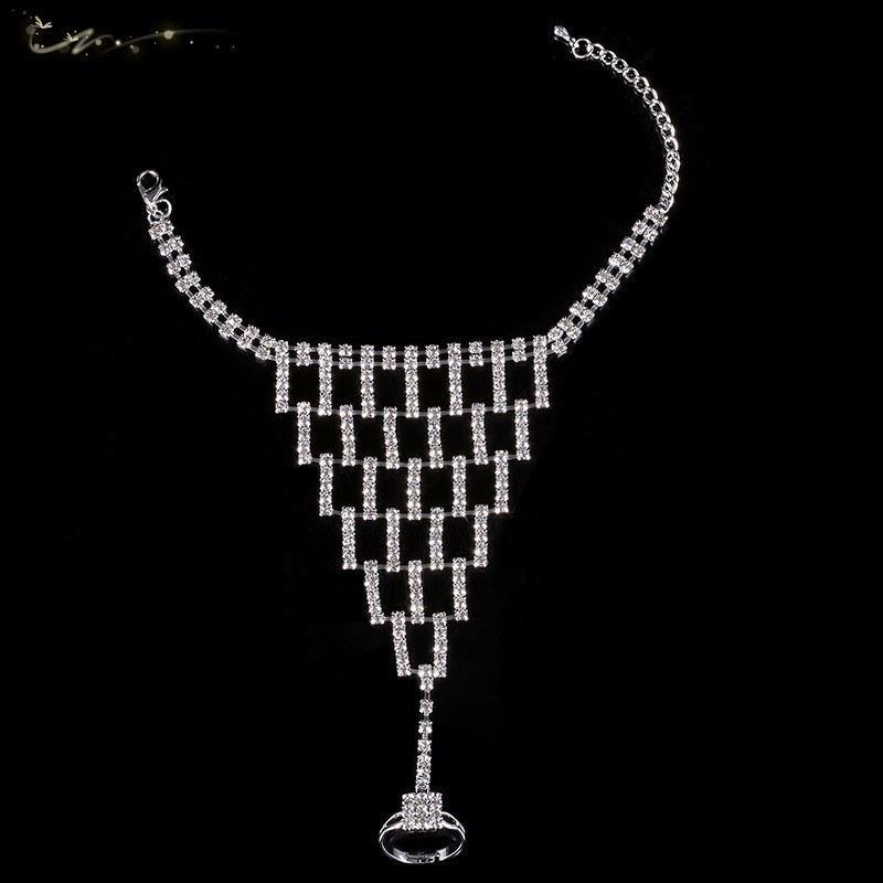 Korean Ladies' Integrated Chain Anklet Leaf Back Circle Butterfly Rhinestone Gold Plated Alloy Jewelry Bridal Wedding