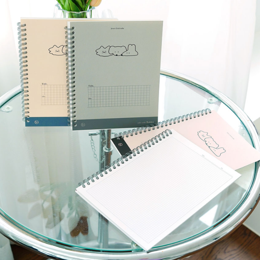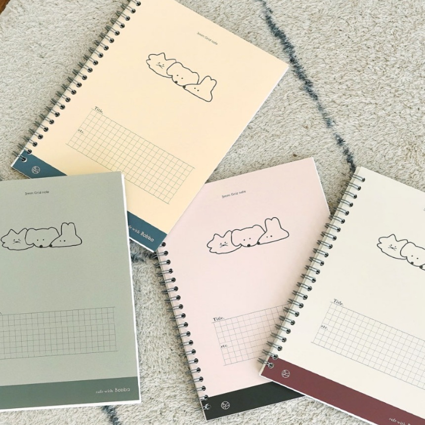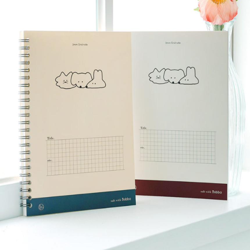 Korean Made Boba Monogrid Note 150 X 210mm 50page Leather Cover Spiral Loose-Leaf Notebook Character Design Students Academy