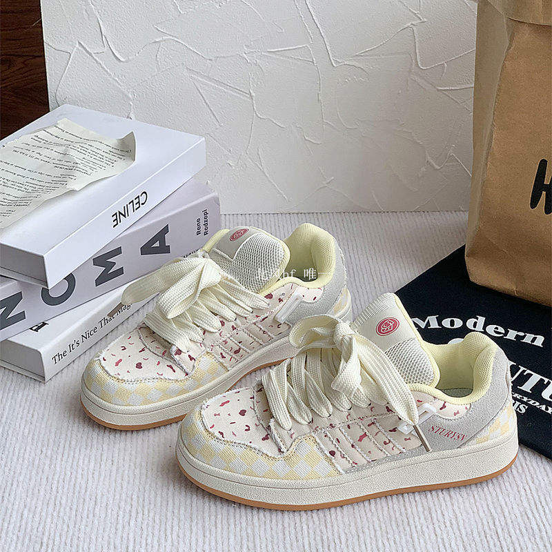 Korean Original 2024 Casual Bread Sports Shoes for Women Niche Design Ins Trendy All-Match Low-Top Fitness Walking Shoes