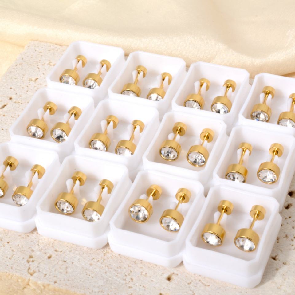 Korean Simple Shiny Zircon Stud Earrings 18K Gold Plated Stainless Steel Unisex Daily Wear Wholesale