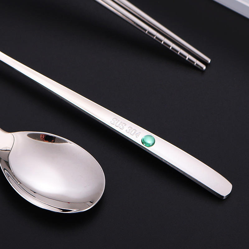 Korean Style 304 Stainless Steel Portable Cutlery Set Spoon Fork Chopsticks For Camping Student Outdoor Use
