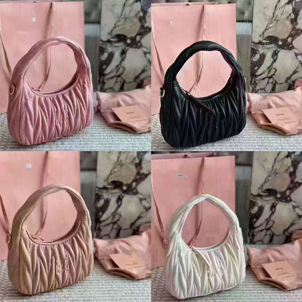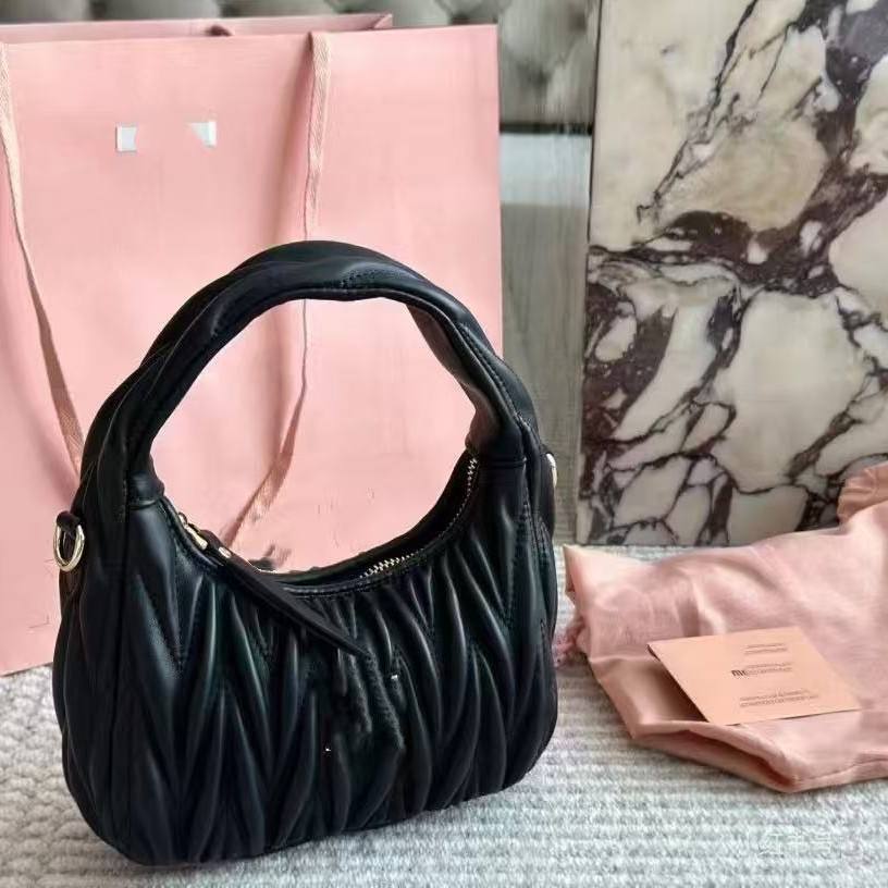 Korean Style Casual Tote Handbag for Women Soft Underarm Pleated One-Shoulder Crossbody Crescent Bag PU Lining Cowhide Material