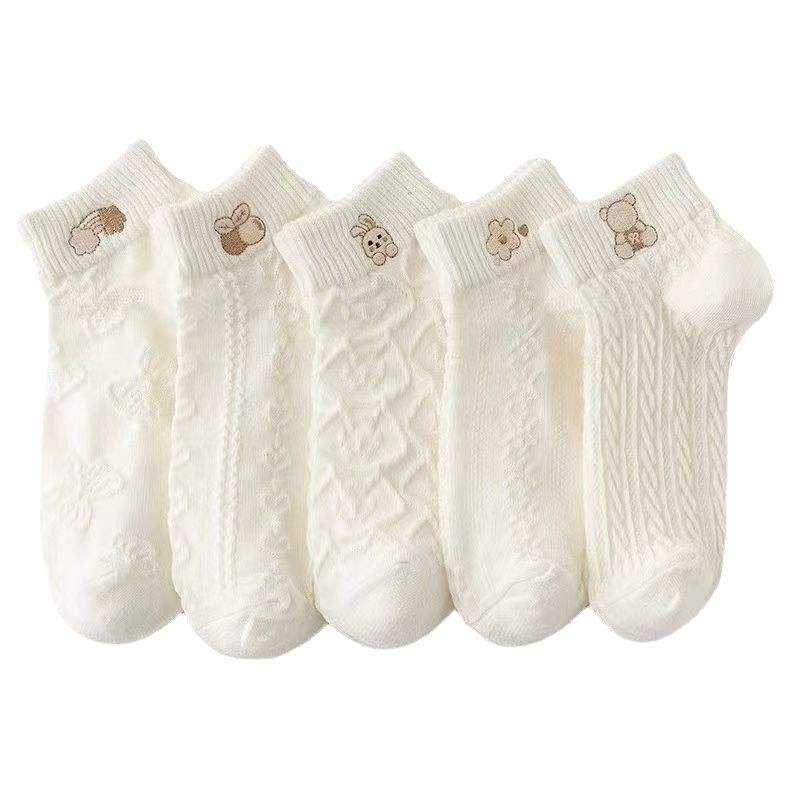 Korean Style Cute Embroidered Ankle Socks Women Soft Breathable Cotton Short Socks Kawaii Knitted Socks for Daily Wear