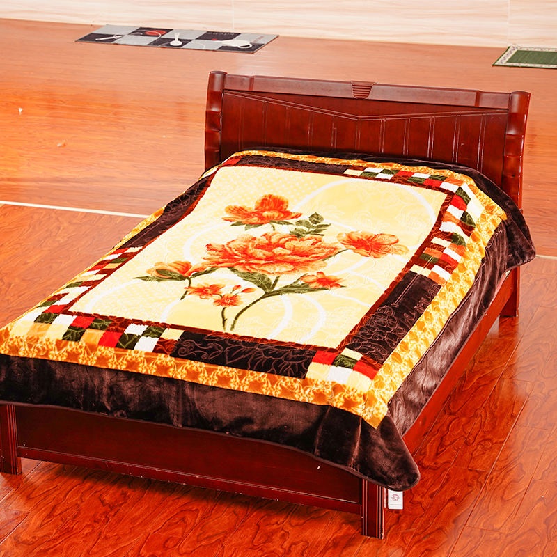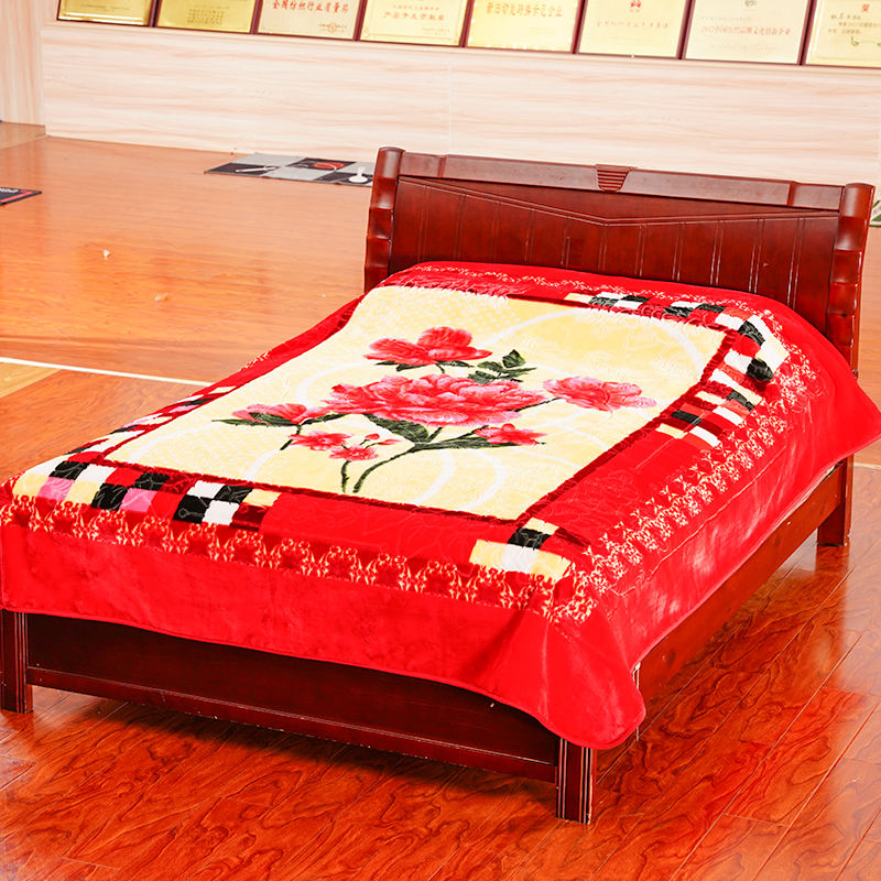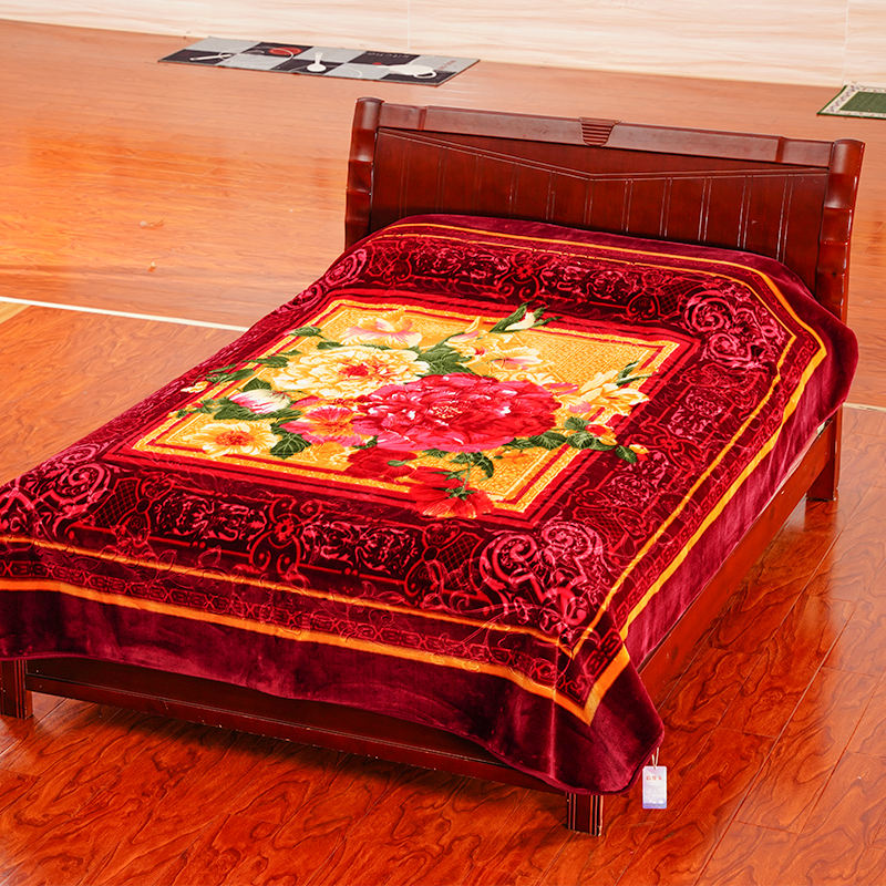 Korean Style Eco-Friendly Linen Thicken Super Soft 100% Polyester Raschel Embossed Floral 3D Printed Plush Blanket Solid Cartoon