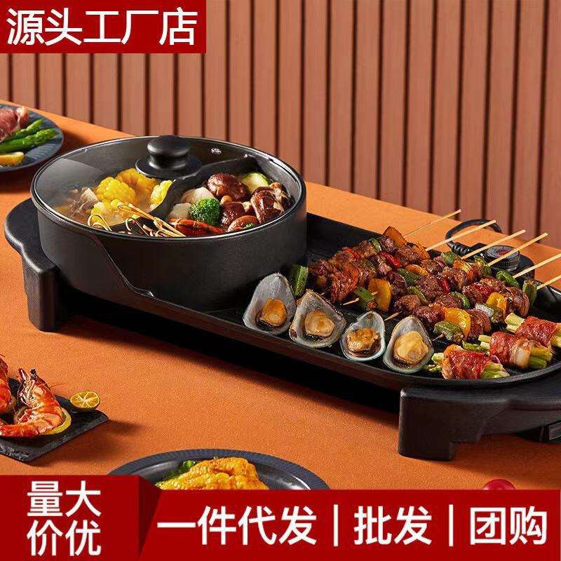 Korean Style Electric Grill With Non Stick Pan 2.1L 4L Smokeless Multi Function Barbecue And Hot Pot For Indoor Cooking