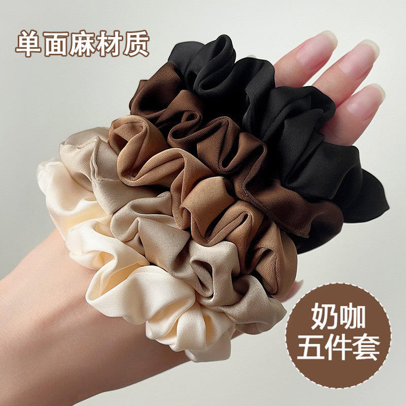 Korean Style Elegant Satin Scrunchie French High-end Tie Fat Band Hair Accessories for Women Five Colors Set