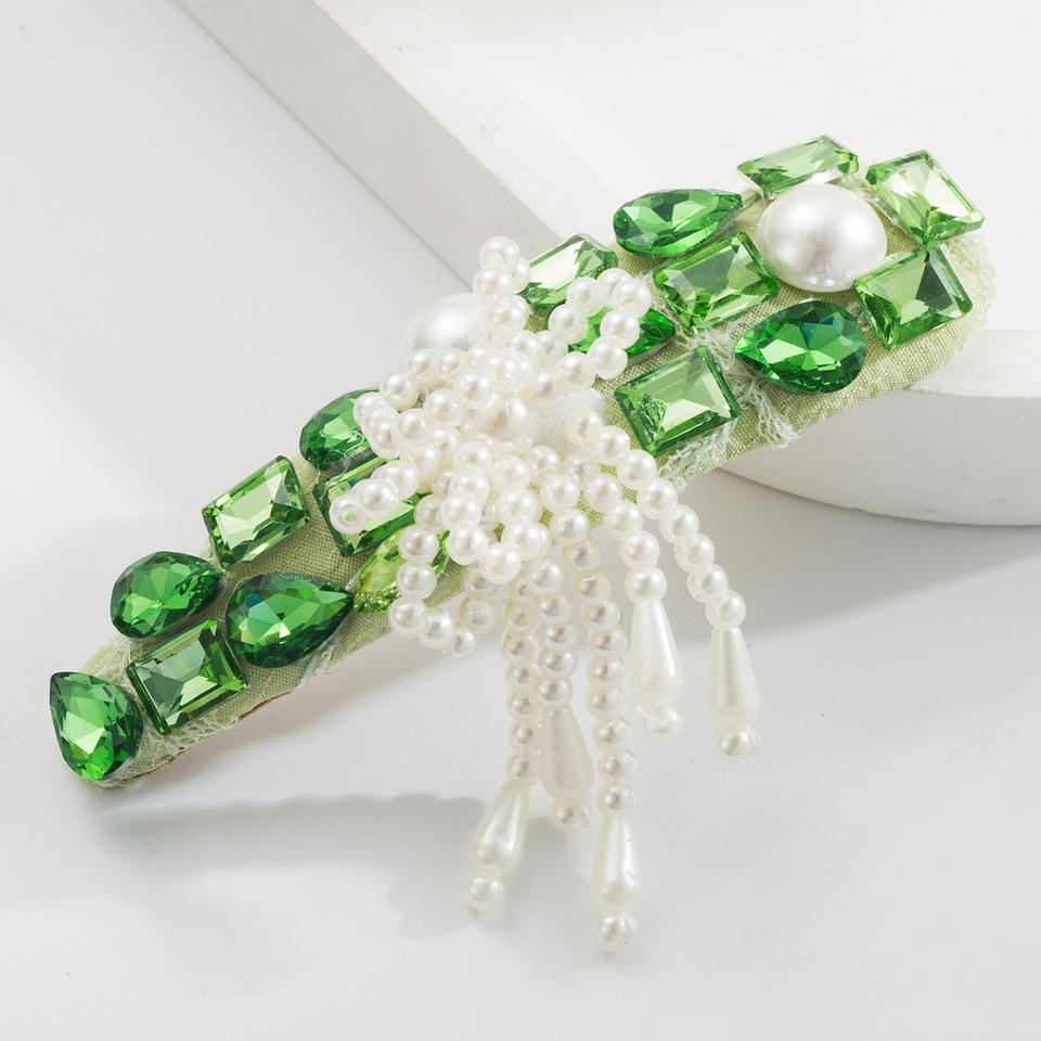 Korean Style Simple High-End Rhinestone Pearl Hair Clip Handmade Christmas Metal Socialite Side Bangs Hairpin for Girls