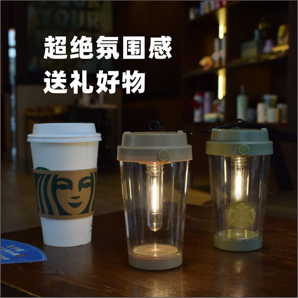 Korean Style Starbucks Cup Night Light Led Ambient Light Battery Powered Manual Button Round Shape For Study Holiday Gift