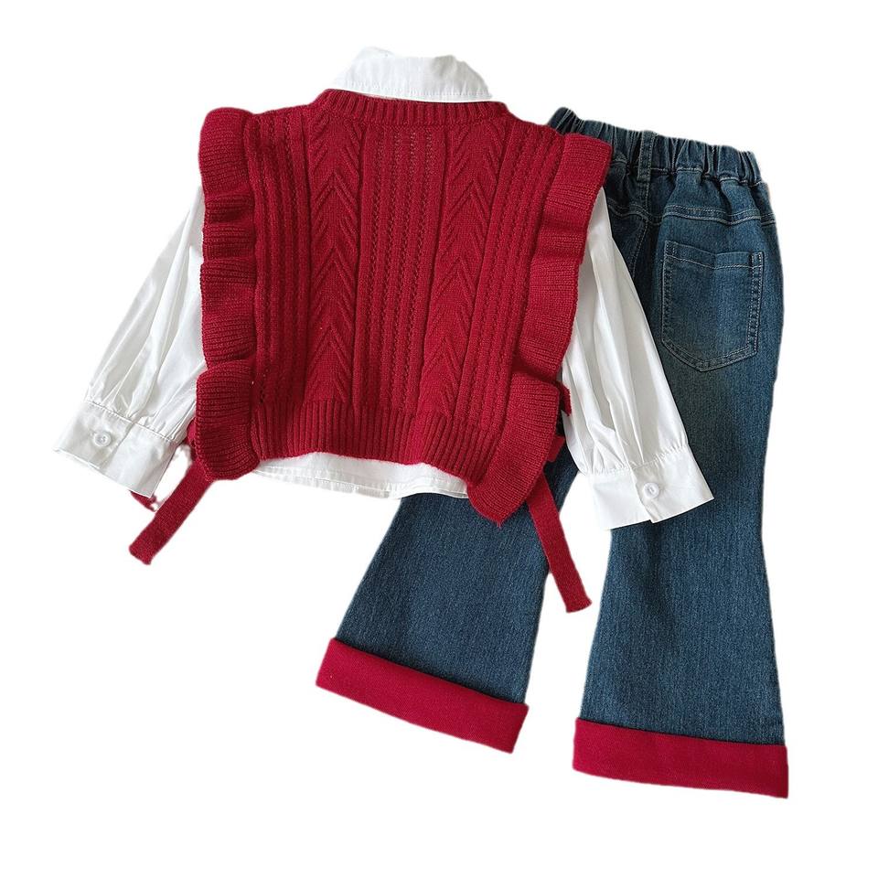 Korean Style Sweet Kid Clothes Fashion Long Sleeves Girl Suits for 3 PCS Casual Children's Set Suitable for 6 Years Old