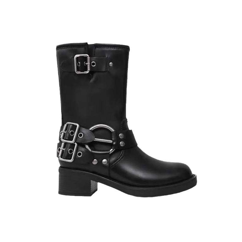 Korean Style Western Biker Boots Retro British Fashion Autumn Arrivals Women's Platform Studded Belt Buckle Slip-On Sheepskin