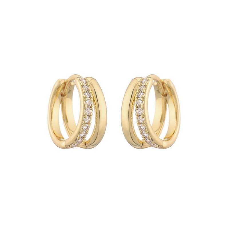 Korean Stylish 14K Gold Plated High Quality Copper Double-Layer Hollow Zircon Small Hoop Earrings for Classic Design Gift