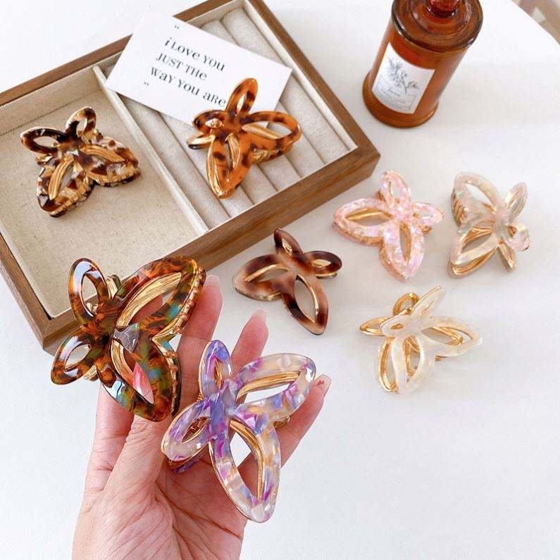 Korean Sweet Style 6.6cm Butterfly Acetate Alloy Hair Claw Hollow Out Bows Hair Clips Clamp Accessories