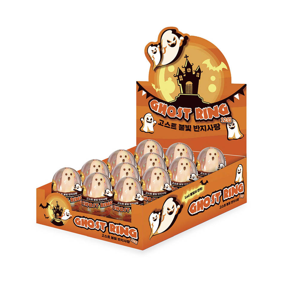 Korean Sweets Halloween Party 10g LED Ring Fruity Hard Candy Lollipop Safe Ingredients Sugar Toy Coated Decoration Bag Packaging