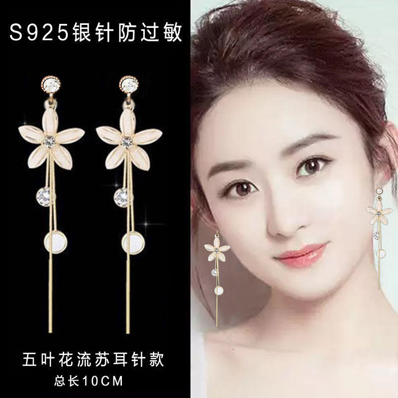Korean Trend Super Fairy Temperament Versatile New Flower Long Flow Comb Silver Needle Baroque Drop Earrings for Women