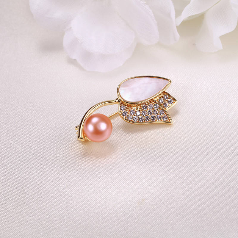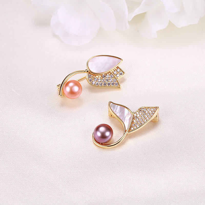 Korean Version Micro-Inlaid Retro Fish Tail Brooch Real Gold Electroplated Zircon Pearl Simple Design Pins Versatile Accessories
