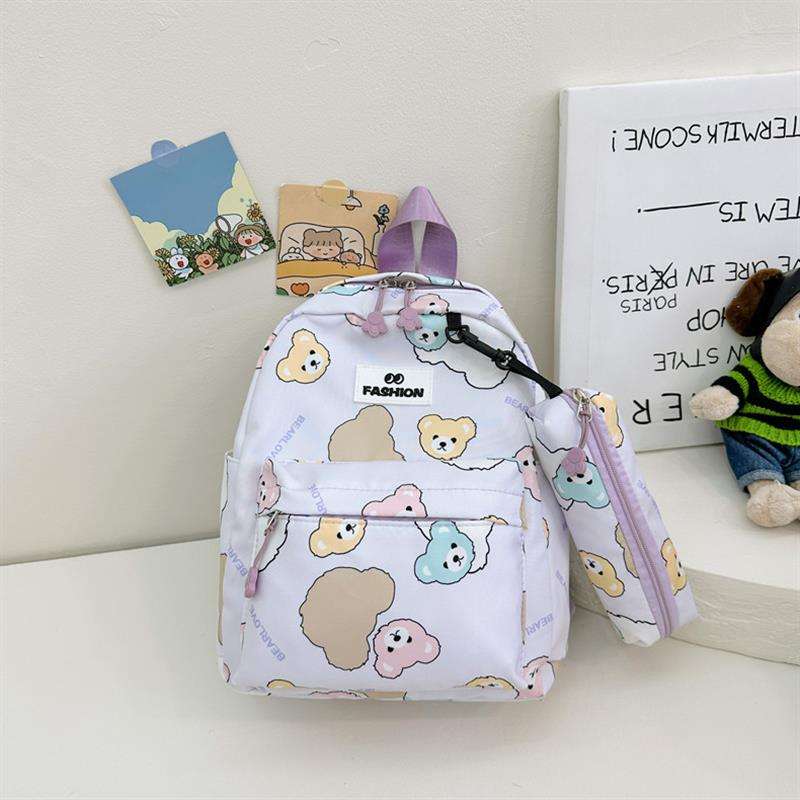 Korean Version of Ins Cute Cartoon Bear Girls Backpack Bags Boys Soft High Quality School Bag for Age 6 to 12 Years