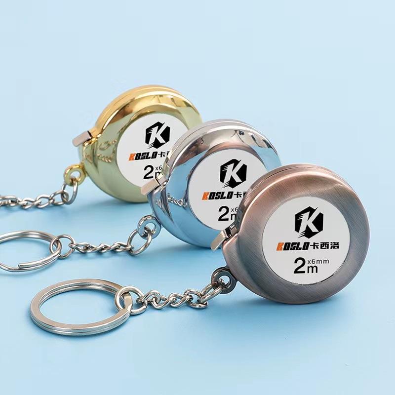 Koslo Mini Self Winding Tape Measure 2M Stainless Steel Automatic Retractable Metric Keychain Ruler Advertising Gift