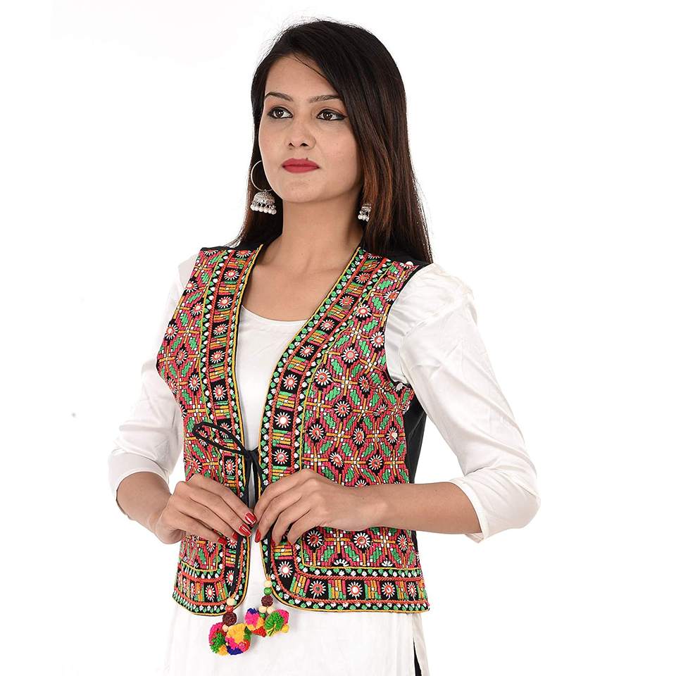 Koti Jacket for Women Waist Coat Stylish Vest Handmade Navratri Traditional Rajasthani Embroidered Mirror Work Gujrati Kutch