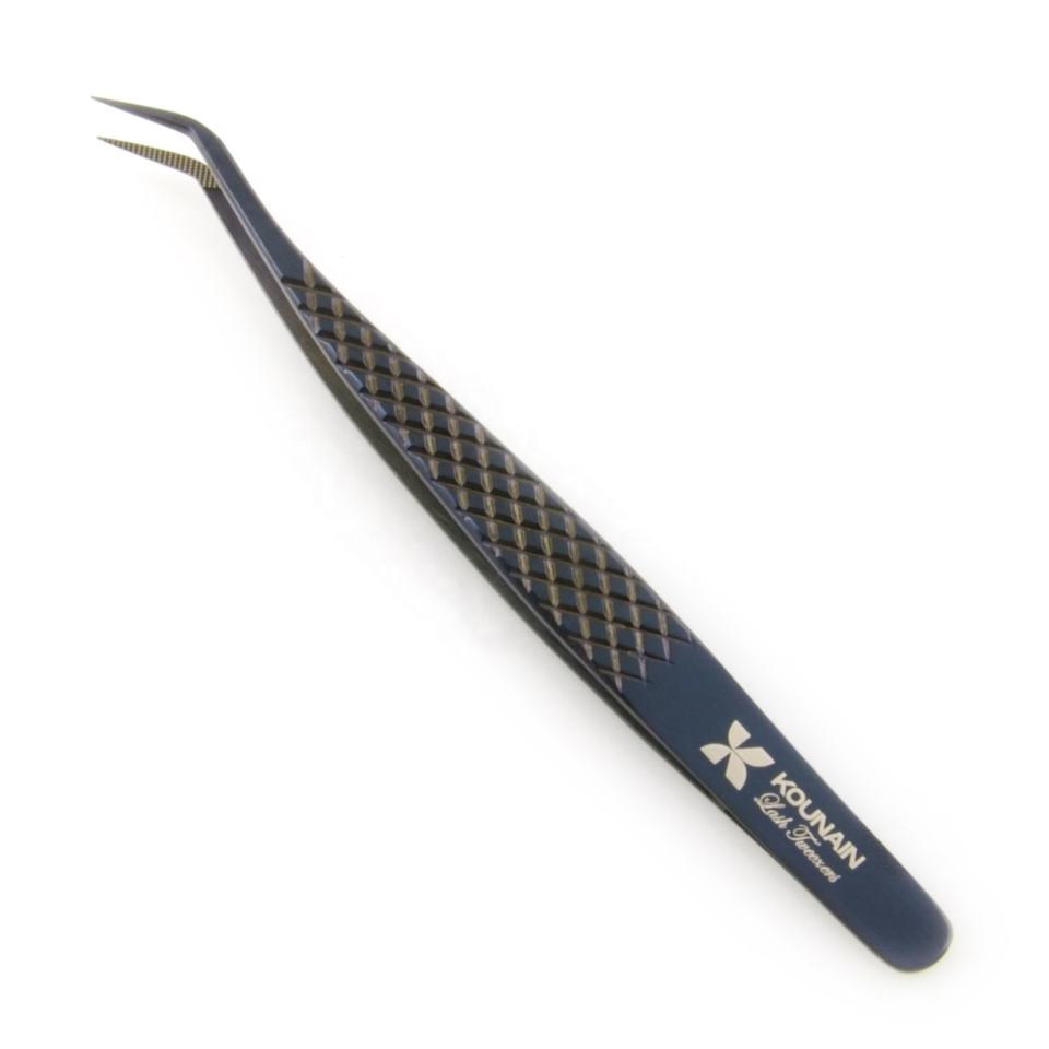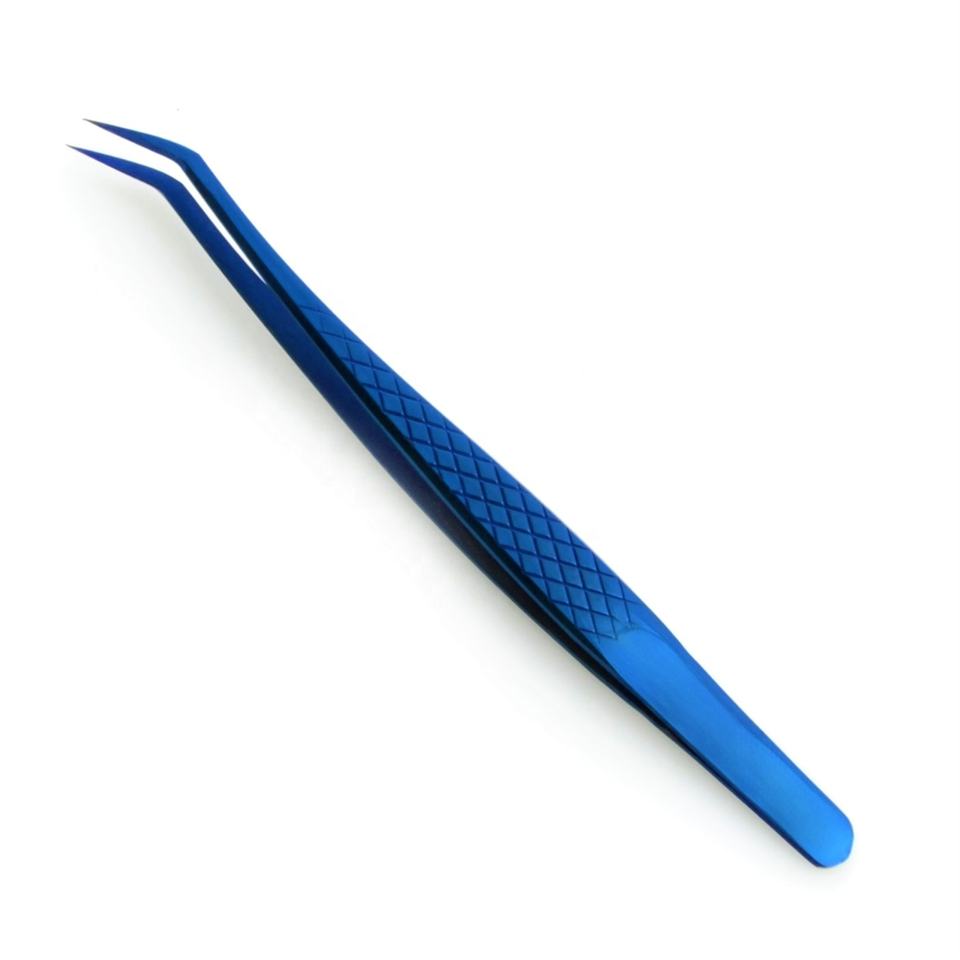 Kounain Professional Quality Blue Plasma Eyelash Extension Tweezers 45 Degree 13 cm Fine Points Best Lash Grip Isolation Trowel
